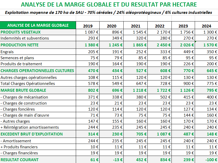 Les rendements 2024 cachent de grandes disparités en fonction des cultures et des secteurs, dues aux sols, aux conditions de cultures et aux conditions climatiques. Concernant les prix de ventes, l’embellie des dernières années est terminée, et les prix reviennent en tendance sur les valeurs 2019/2020.